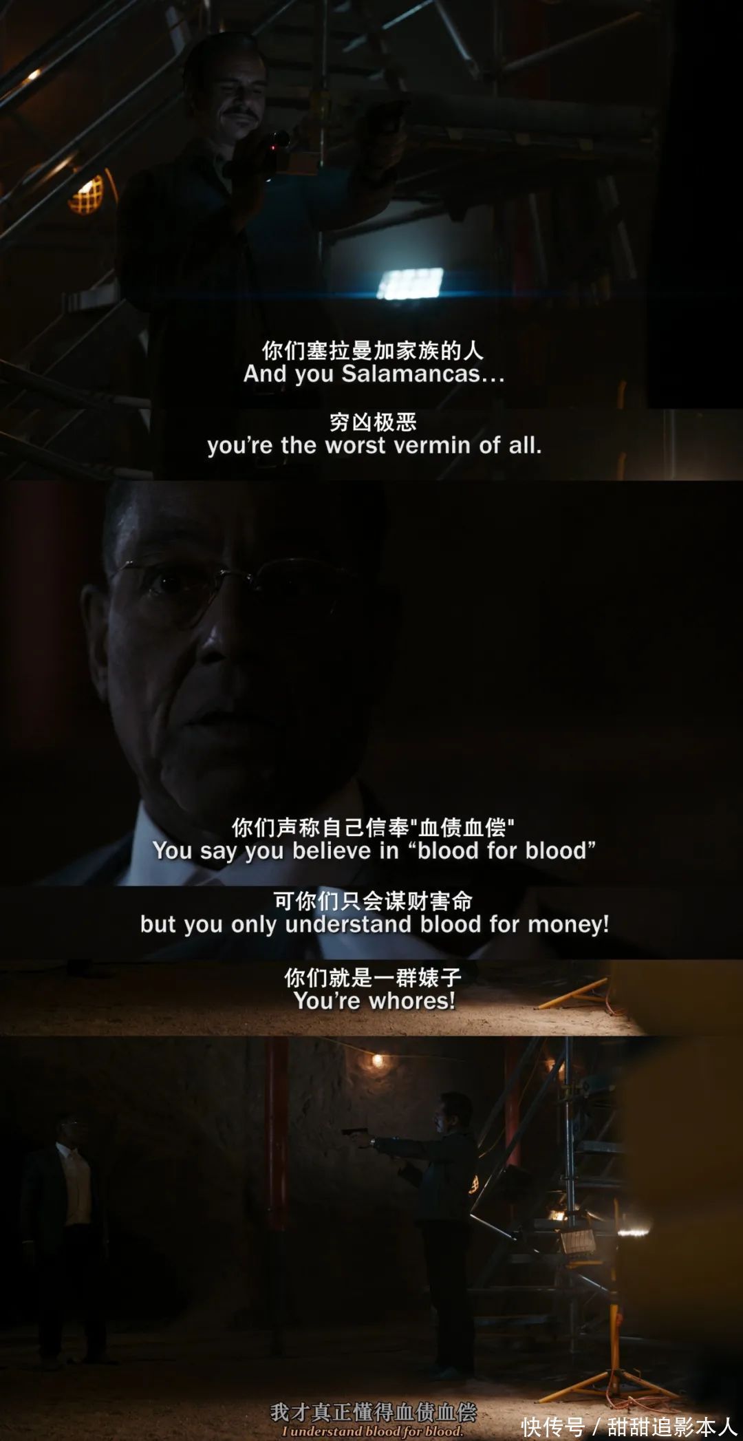 又比如当麦克处理霍华德的尸体,警告并嘱咐吉米和金的时候。